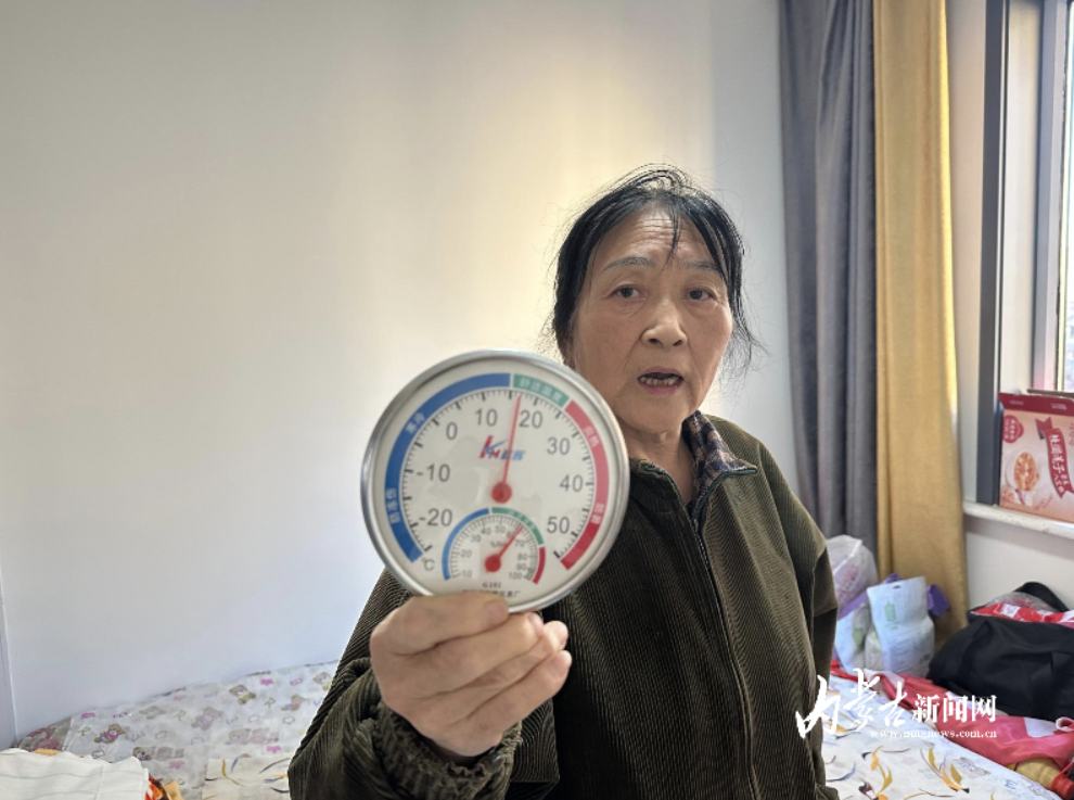 隨后,記者又來到居民張俊英家中,她告訴記者,去年入住后,就有家中溫度不高,窗戶密封不嚴(yán)等問題,今年溫度實在不熱,“我家樓上、樓下都沒有居民入住,次臥室的溫度僅有17度。”