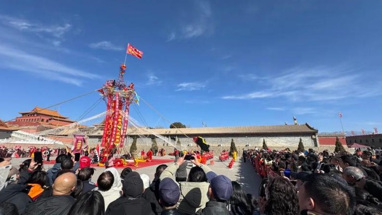 走進定遠營古城,濃郁年味兒撲面而來。國潮巡游、吳橋雜技、傳統(tǒng)雜耍、雙頭變臉、古彩戲法、北獅表演等非遺民俗節(jié)目輪番上演,駝鄉(xiāng)百姓和各地游客穿梭其間,掌聲、歡笑聲此起彼伏?!胺沁z+國潮+傳統(tǒng)”的沉浸式演出,讓大家盡享視聽盛宴。來自北京的游客李紹春心情愉悅地說:“這里的廟會活動很有意思,安排周密、策劃用心,天氣也好,大家都開開心心的。”